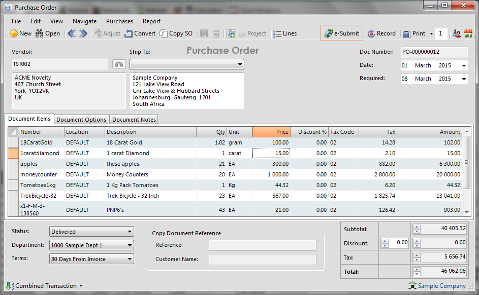 Palladium offers seamless integration into the AccountMate ERP (other solutions on the way) solution catering for a full 360 degree solution by allowing Palladium Clients to switch Purchase Orders directly to their Vendor's ERP solution while authenticating Terms, Credit Limits, Inventory Availability and Pricing, all at the push of a button. In addition a synchronisation facility updates the Item Masterfile in Palladium with new or amended Inventory Items, Item Images as well as the Vendors price for that item catering for Real-Time Vendor information in Palladium. In addition to this, the inventory enquiry function will also interrogate the availability of an item in all Palladium Warehouses as well as that at the Vendor (should the Vendor Allow). This not only supports a paperless environment but also alleviates the need to call the vendor saving an insurmountable time and money, and ensures that the Vendor offers unsurpassed service to their Palladium Accounting Customer!